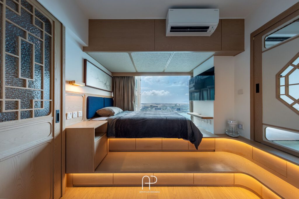 - 日式禪意元素: 空間融入榻榻米和地台設計,增添日式禪意,同時兼具收納功能。